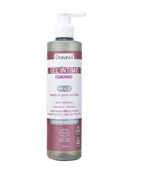 O Gel Íntimo Drasanvi tem uma formulação à base de Aloe Vera Orgânico, Extrato de Calêndula Orgânico, Extrato de Oliva Orgânico, Óleo Essencial de Tea Tree Orgânico, Óleo Essencial de Lavanda Orgânico, Óleo Essencial de Gerânio Orgânico e Extrato de Hamamélis, que refresca e nutre intensamente a pele, dando-lhe um vigor extraordinário. Além disso, tem funções calmantes, antibacterianas e antifúngicas. Tem pH 4,5, ideal para a área de cuidados íntimos. Inclui também na sua formulação prebióticos, que favorecem a geração da flora, ao mesmo tempo que a equilibra, melhorando a saúde e a hidratação íntima.
